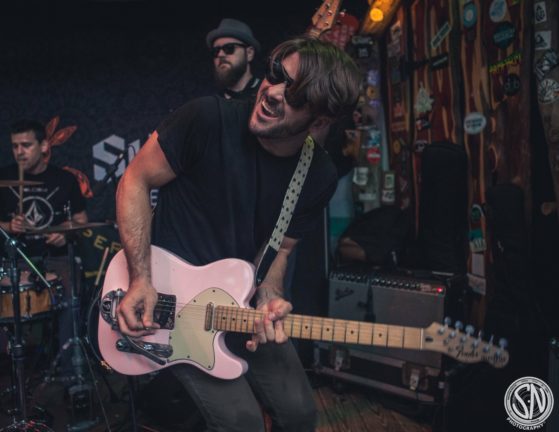 Mick Swigert, more affectionately known as Mick Rude, leads this band of merrymakers on vocals and rhythm guitar. On bass and backing vocals is Kevin “K Jo” Johnson, alongside drummer Ryan Cross, forming a mighty rhythm section. Markis Hernandez on sax and Sam Szpendyk on trombone (and more backing vocals) often steal the show from their brass section. Newcomer Elijah Taj Gee is a maestro on keyboards and is quickly learning his way around the band’s empty beer bottles. And last but not least is Hunter Hutchings on lead guitar, who doesn’t say much on stage, but shreds and sure is pretty to look at.